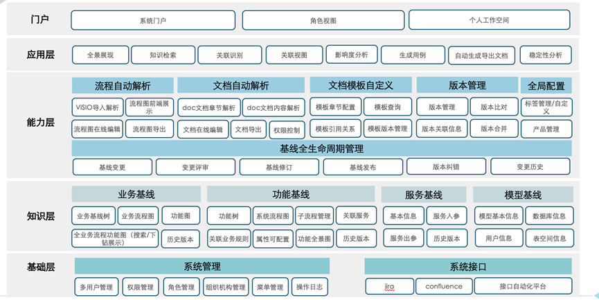 基于流程基线、、功能基线、、服务基线、、、模型基线等,,,,梳理信息之间的关系,,,分企业级、、、、系统级、、、功能级结构化展示