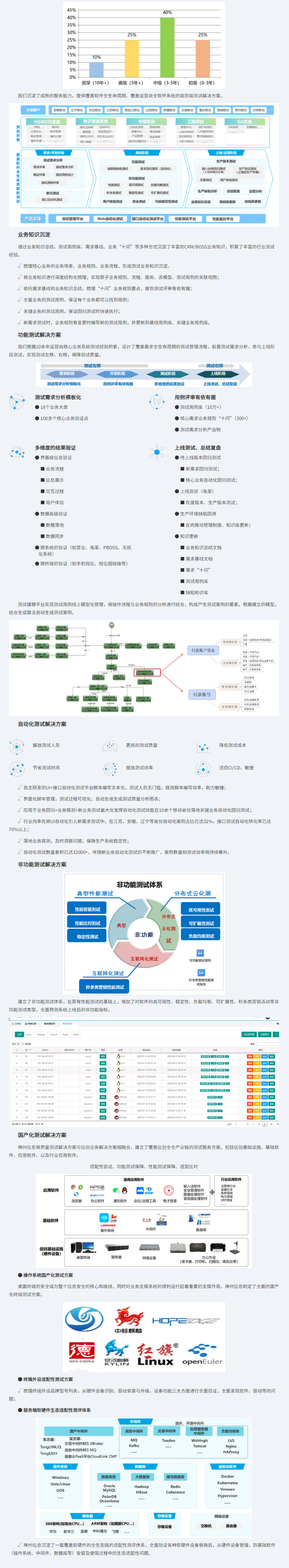 在运营商行业拥有长期的测试经验积累,,,,梳理了核心业务的业务场景、、、、规则、、、流程等,,形成了深度结构化的业务知识库;