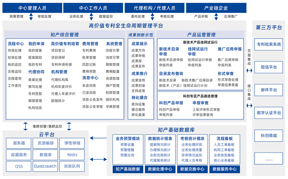 高质量专利全生命周期管理平台,,推动核心技术、、、创新技术的知识产权的管理,,,,完善保护体系及手段、、、、提升精细化管理能力、、推动高效转化运用服务,,,提升企业内外一体化协作服务水平,,,提升以关键技术、、创新技术为核心的知识产权精细化管理、、、、高效益转化运用及全链条服务水平。。。。