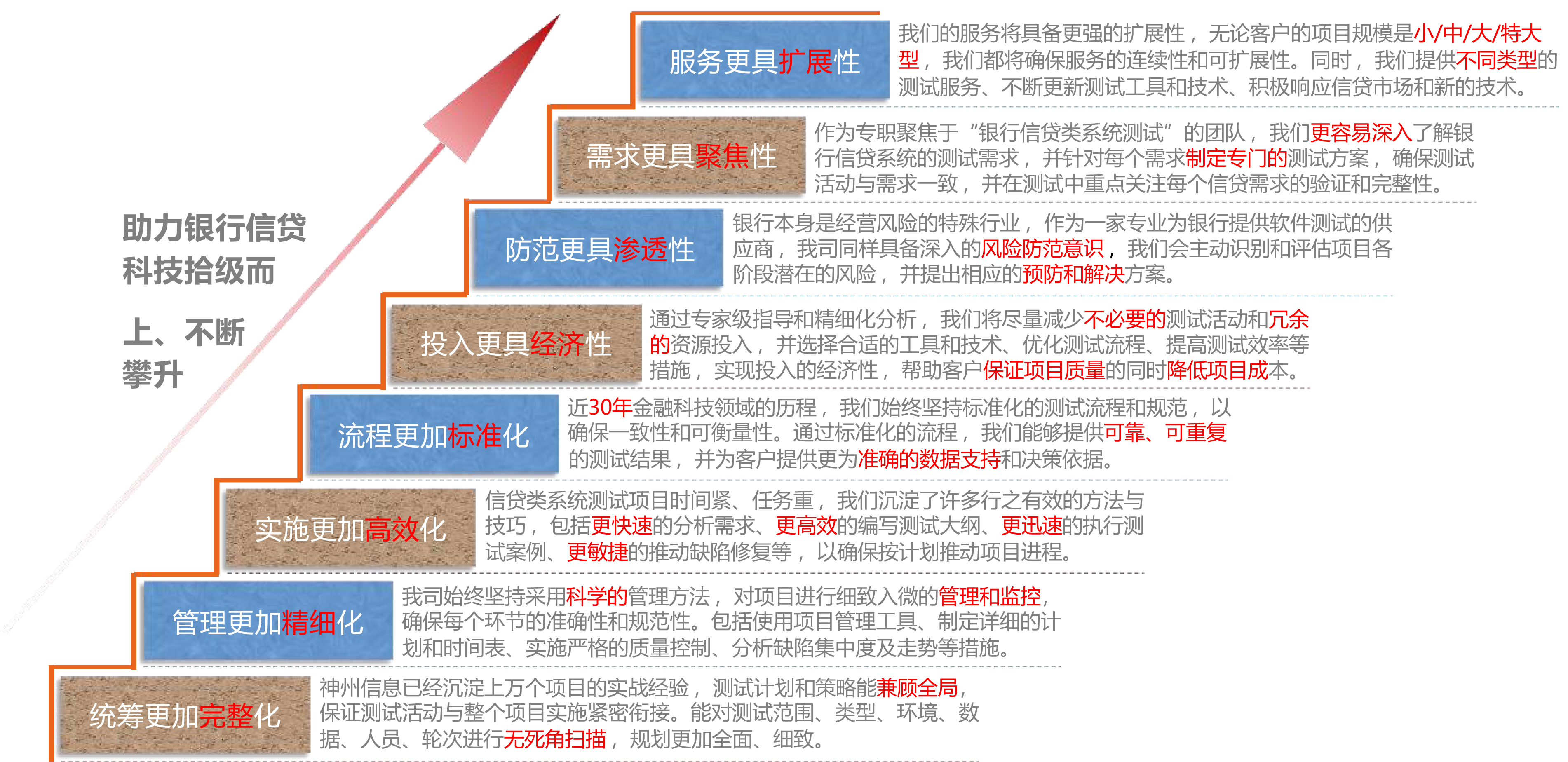 我们将以快速响应能力为导向,,,,及时处理银行在信贷类系统测试过程中遇到的问题和需求变,以确保项目的成功实施、、、、符合客户预期。。。