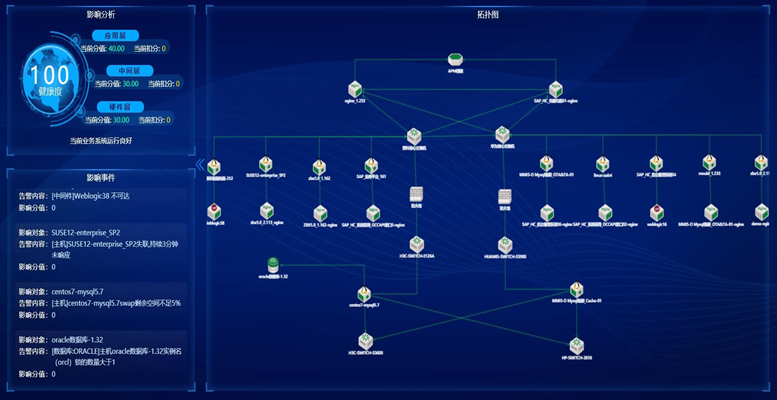 集中监控:从底层硬件到上层应用,,监控数据需要集中采集和分析,,,,并提供统一的告警通知和业务全景可视化;同时支持与虚拟化、、、、云平台等外部平台对接起来。。。。